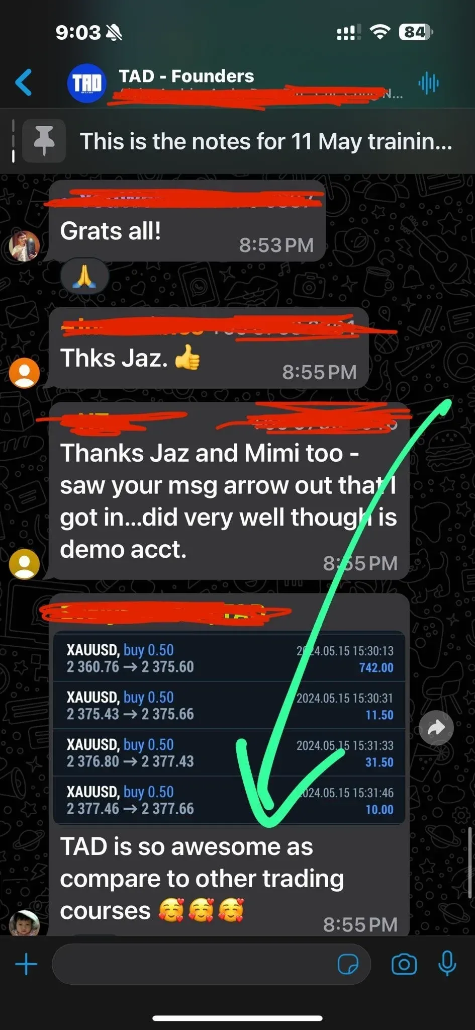 I'll talk to you in our private Telegram Group that you'll get instant access to as soon as you get access to the TAD Forex Trading system.